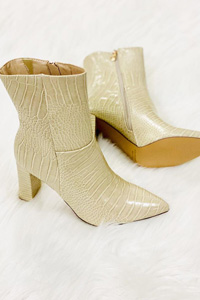 Keeping it casual? Head to Ella + Scott to snag this adorable pink top! The bell sleeves and decorative details take this sweater to the next level. We’ve paired it with these dark wash jeans and to-die-for, creamy snake print booties!