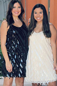 Travel back in time in Pearland at the Queen Bling Boutique! This outfit is ideal for any roaring 20s themed parties this New Year’s Eve! We’ve paired this flapper inspired dress with a classic pearl clip and heels that have just the right amount of sparkle!